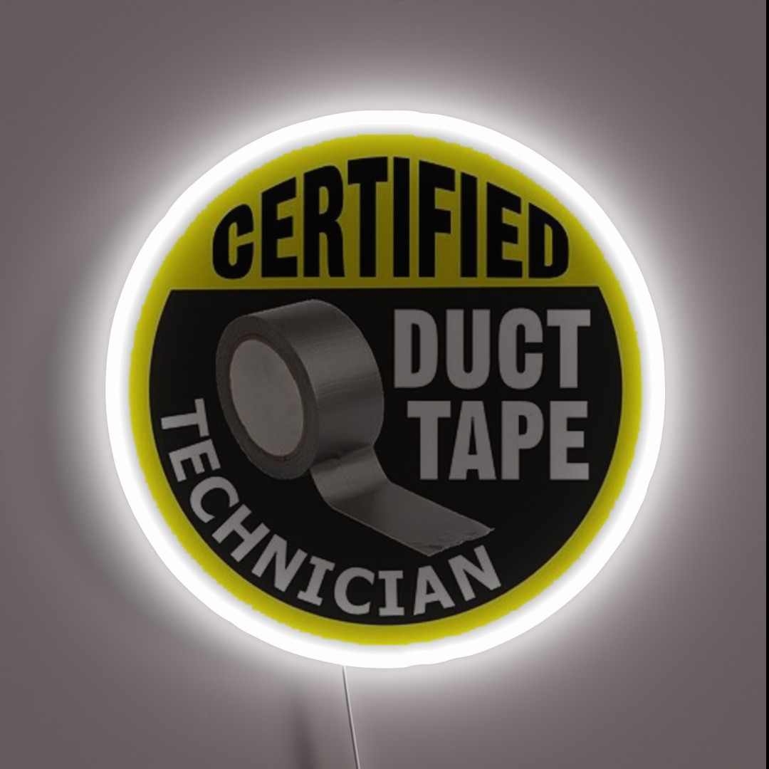 Add a pop of color and professional flair to your workspace with this unique Certified Duct Tape Technician RGB neon sign, perfect for engineers, makers, and DIY enthusiasts who appreciate duct tape’s versatility.