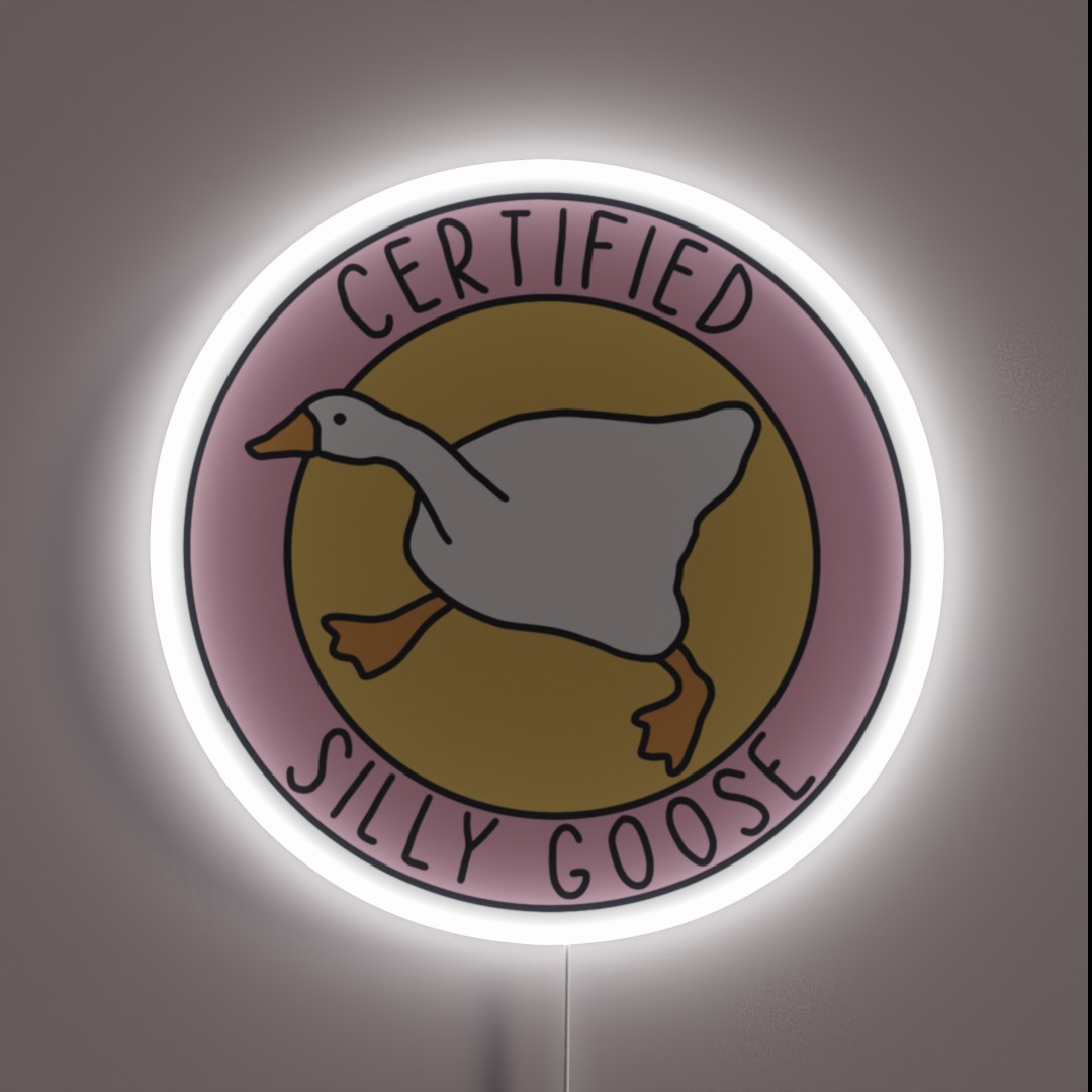 Add a pop of playful personality to any room with our Certified Silly Goose Pink RGB Neon Sign, featuring vibrant pink hues and customizable color-changing capabilities.