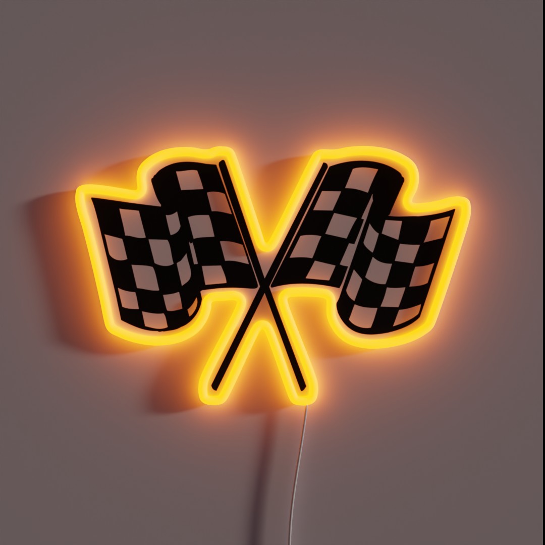 Add a touch of high-speed excitement to your motorcycle or car with our vibrant Checkered Flags Cool Helmet Motorcycle Or Car Bumper Racing RGB Neon Sign.
