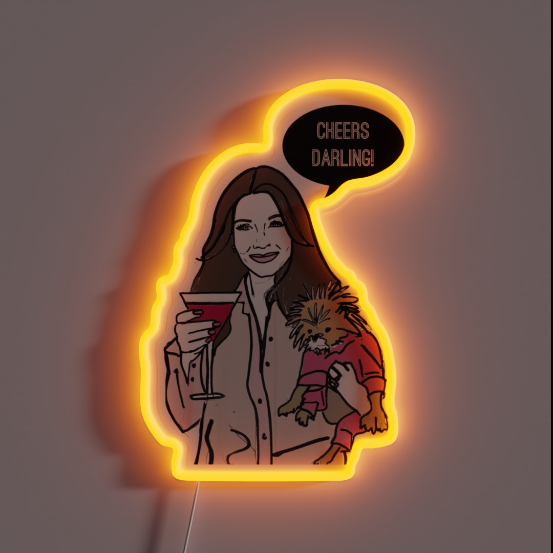Elevate your space with our Cheers Darling RGB neon sign, a vibrant and modern home decor piece that combines nostalgic charm with cutting-edge technology to bring a touch of personality and whimsy to any room.
