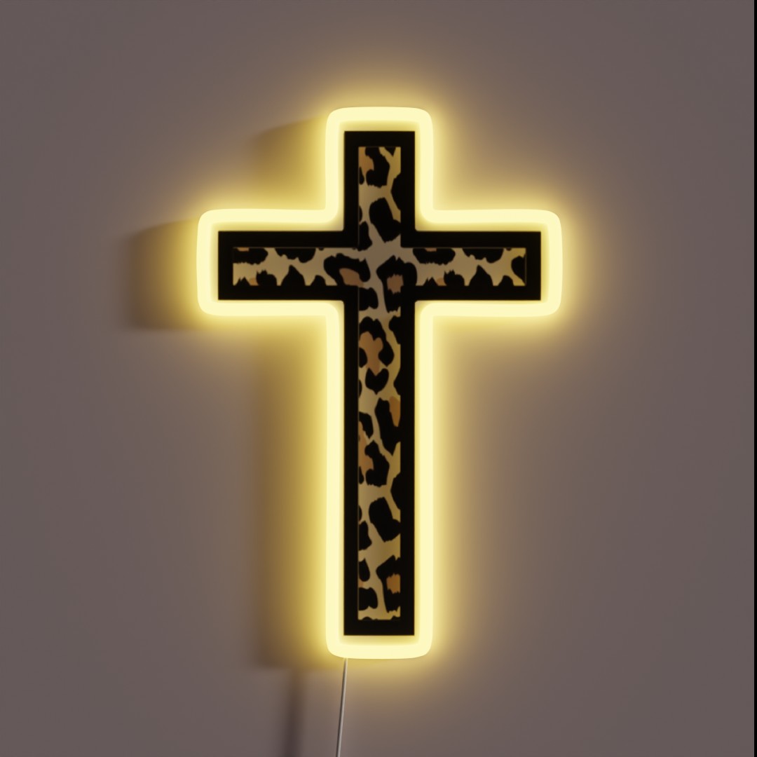 **Illuminate Your Space with Style: Cheetah Print Cross Design RGB Neon Sign**