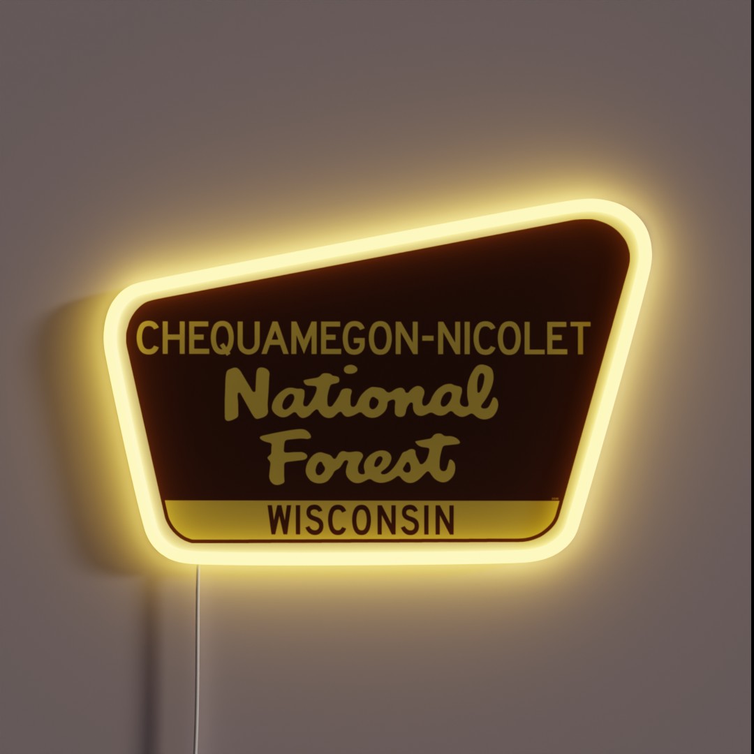 Add a touch of Northwoods charm to your home or office with this vibrant RGB neon sign featuring the iconic Chequamegon Nicolet National Forest Wisconsin logo, perfect for outdoor enthusiasts and locals alike.