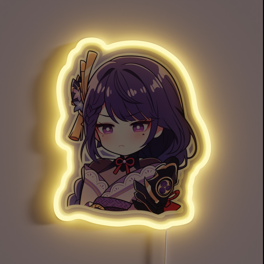 Transform your space with this captivating Chibi Raiden Shogun Genshin Impact RGB neon sign, a perfect blend of form and function.