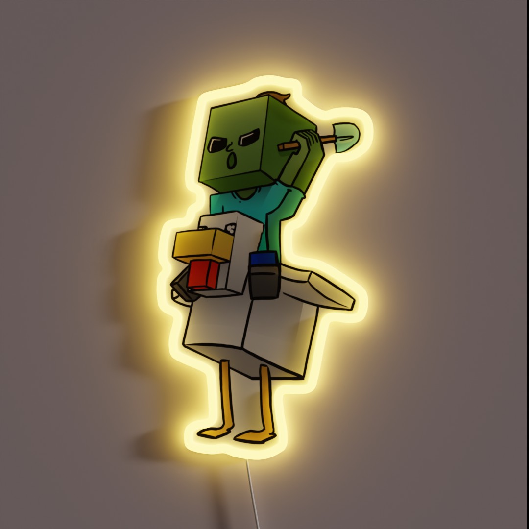 Add a vibrant touch to your gaming setup or home decor with this unique Chicken Jockey RGB neon sign, a colorful nod to the popular video game meme.