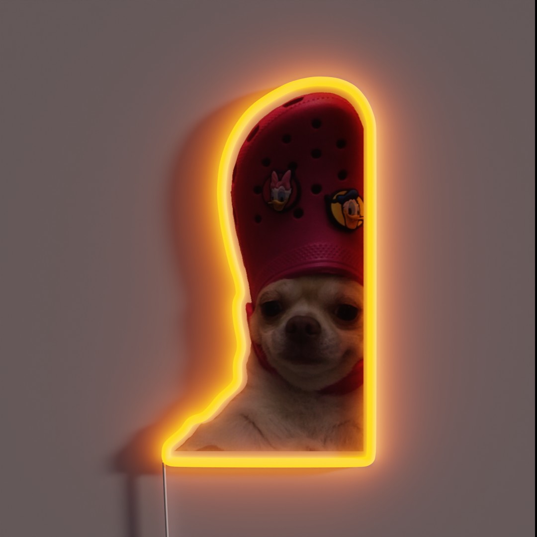 Add a quirky touch to your home decor with our unique Chihuahua with Croc Neon Sign, featuring vibrant RGB colors and a fun design perfect for animal lovers and fashion enthusiasts alike.