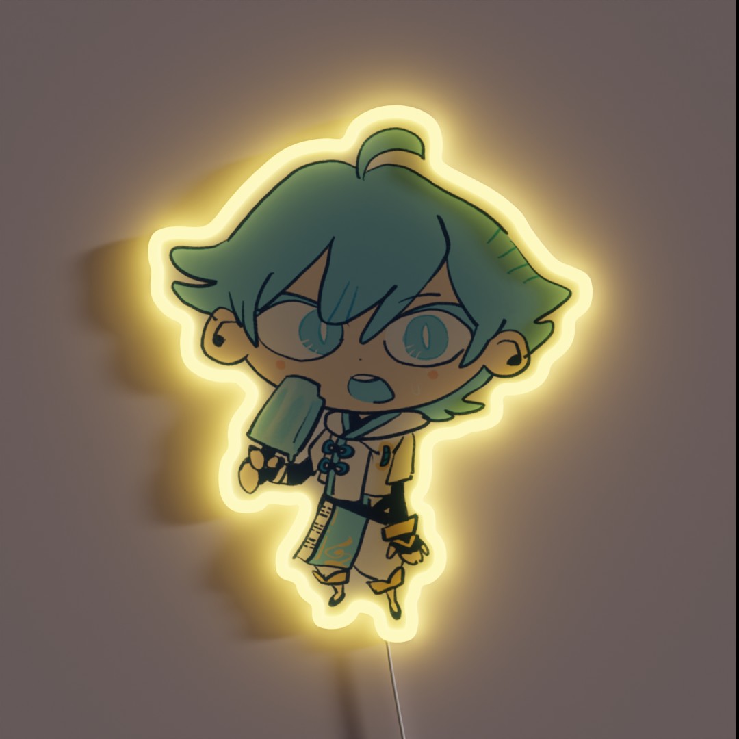 A vibrant Chongyun RGB neon sign, inspired by the Genshin Impact character, adding a pop of color and gaming flair to any room or space.