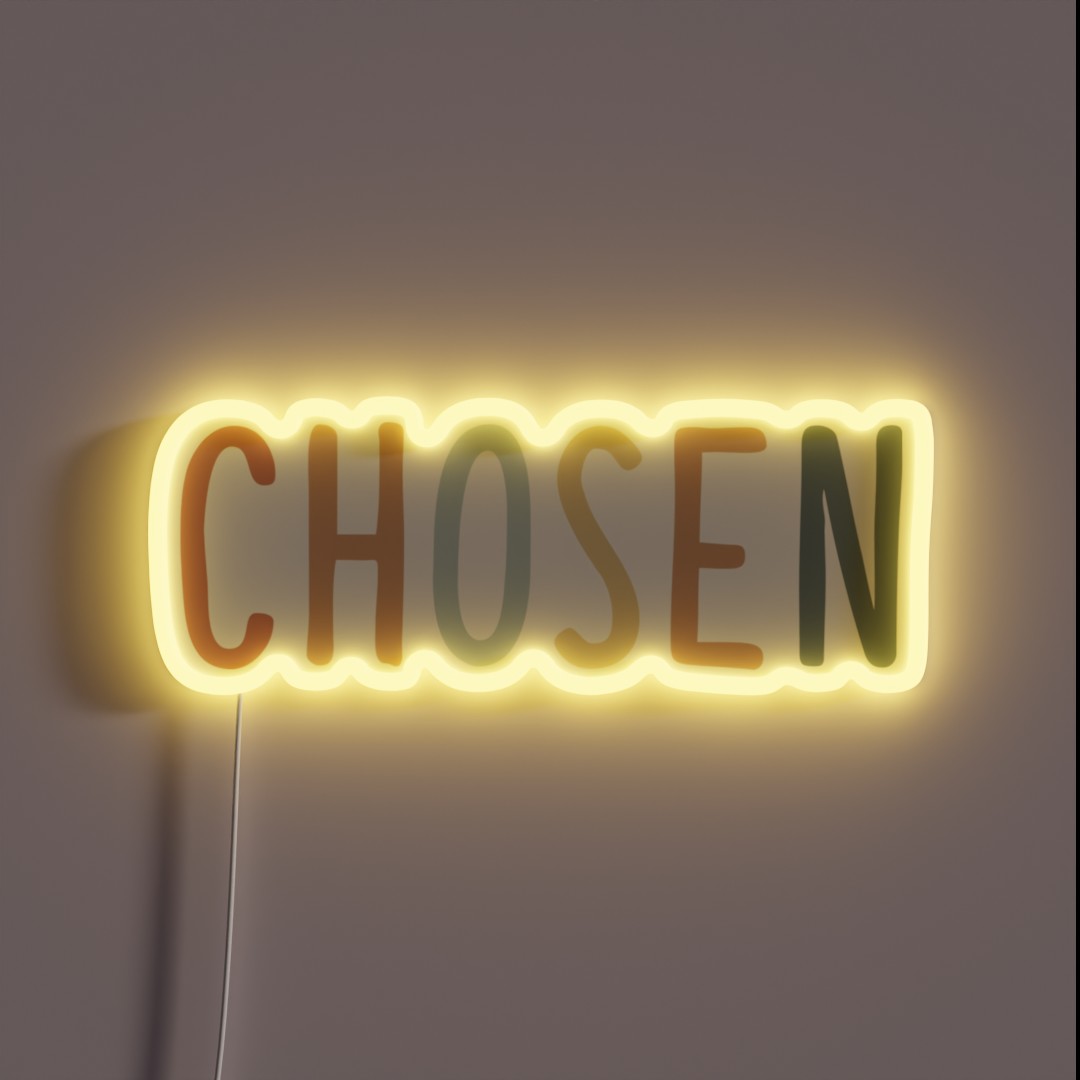 Bring the beauty of faith and inspiration into your life with this stunning Christian Quote Retro Bible Verse Floral Chosen RGB neon sign. Order yours today!