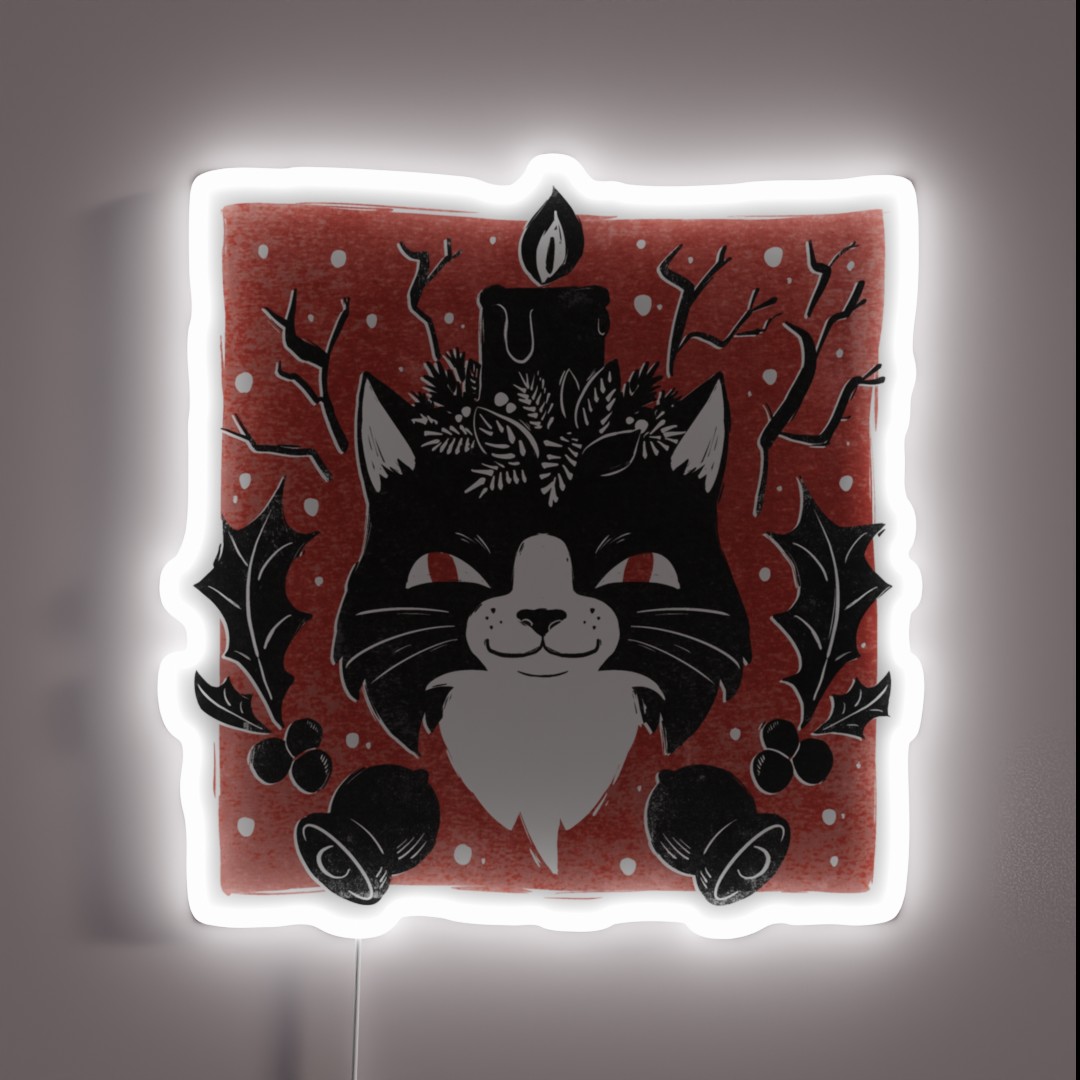 Get ready to spread some holiday cheer with this delightful Christmas Cat Candle RGB Neon Sign!