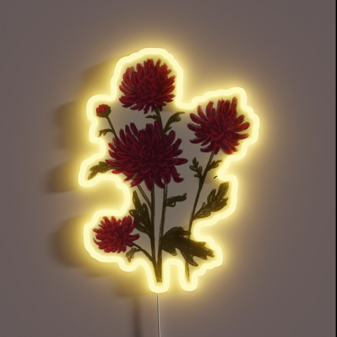 Chrysanthemum Drawing Chrysanthemums Mums RGB Neon Sign