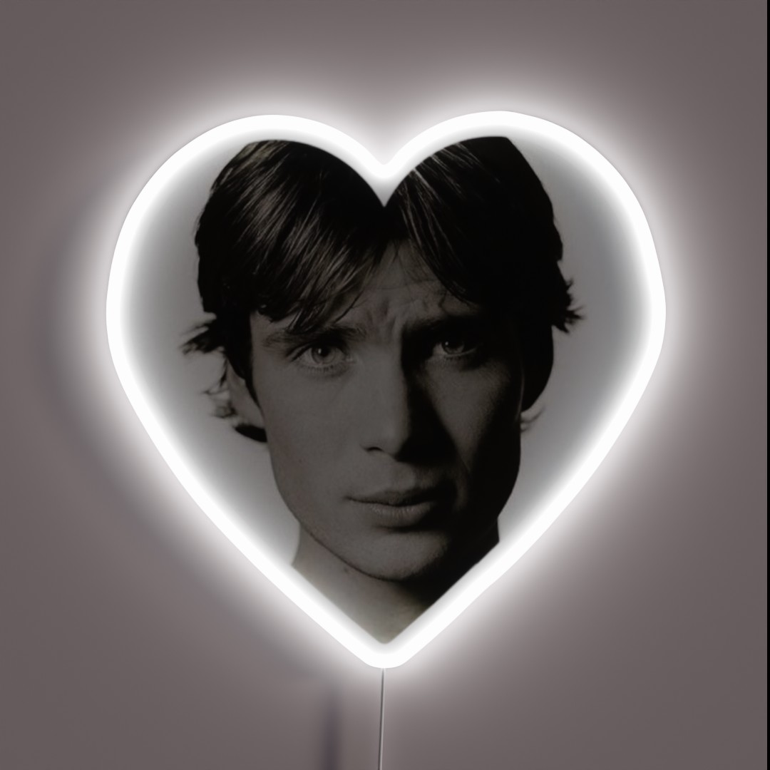 Introducing the Cillian Murphy Heart RGB Neon Sign, a unique and eye-catching addition to any room or space. This touchable and safe sign features a mesmerizing heart design inspired by the Irish actor Cillian Murphy, perfect for fans of his work.