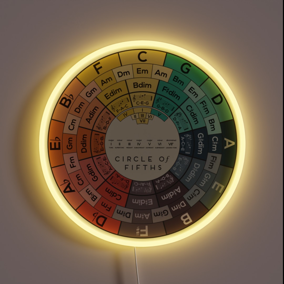 **Musical Harmony Meets Neon Elegance: Circle of Fifths RGB Sign**