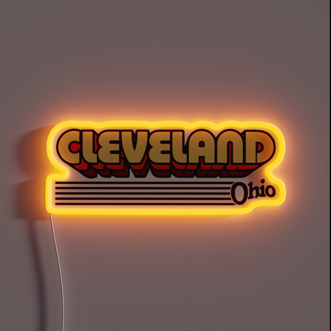 Cleveland Ohio Retro Stripes RGB Neon Sign