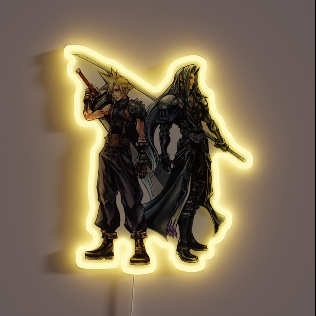 Bring the worlds of Final Fantasy VII to life with our exclusive Cloud and Sephiroth RGB neon sign, featuring iconic characters in striking neon lights, perfect for gaming enthusiasts and collectors.