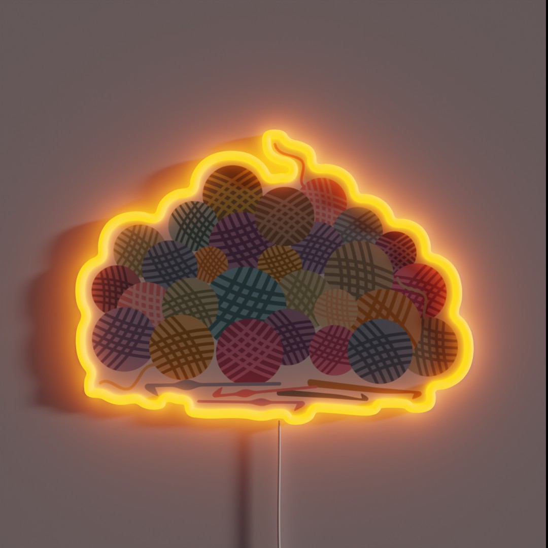 Experience the magic of colorful crochet hooks, balls of yarn, and an RGB neon sign all in one. Order your Touchable Yarn Ball Sign today and add a touch of whimsy to your home or office decor!