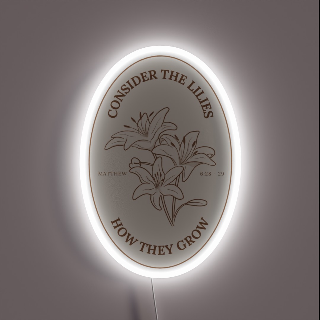 Elevate your space with the Consider the Lilies RGB Neon Sign, a vibrant and eye-catching decorative piece that adds a touch of modern elegance to any room.