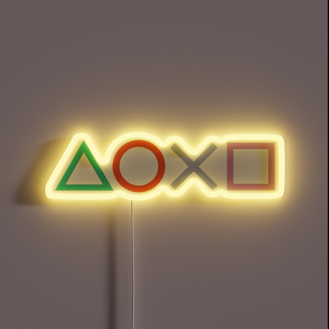 Add a touch of gaming ambiance to your space with this vibrant Controller Buttons RGB neon sign, featuring colorful LED lights that recreate the iconic controller layout in a unique and eye-catching design.