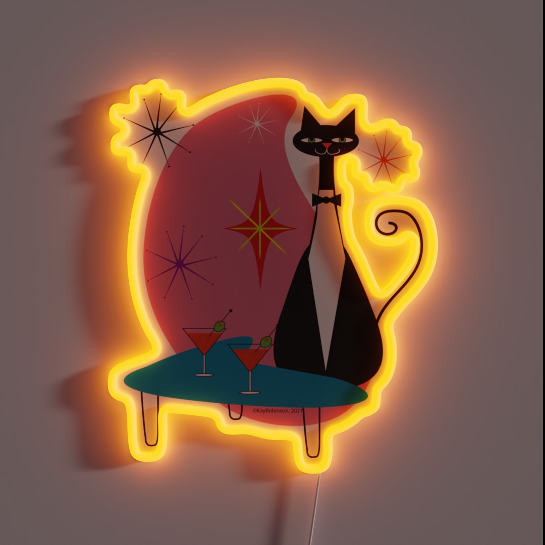 Add a touch of retro flair to your bar or lounge with this vibrant RGB neon sign featuring a cool cat cocktail party design.