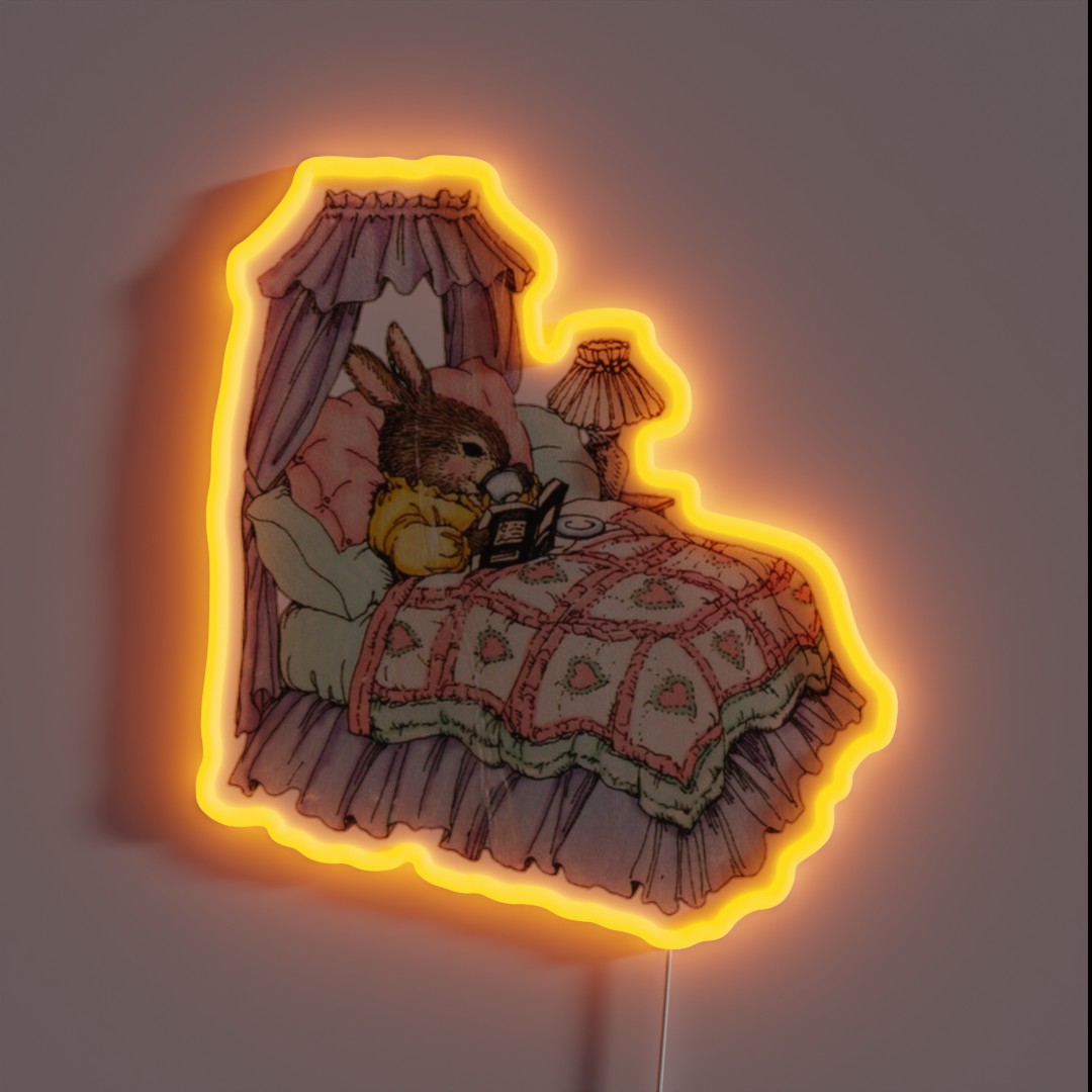 **Coquette Vintage Bunny Reading a Book RGB Neon Sign**