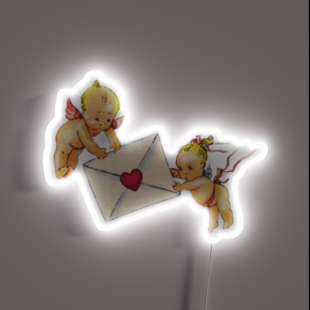 **Coquette Vintage Cherub Love Letter RGB Neon Sign**