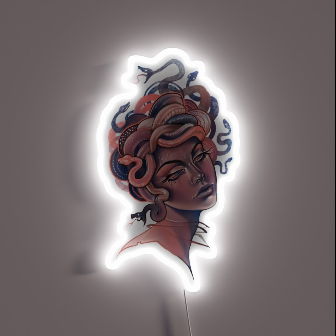 Coral And Blue Medusa Portrait RGB Neon Sign