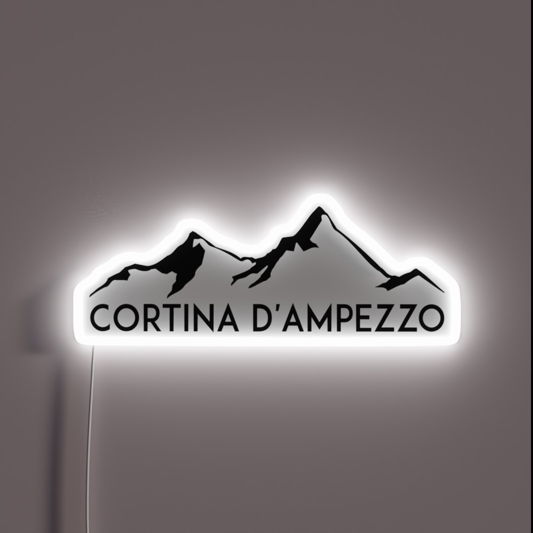 Experience the breathtaking beauty of the Dolomite Mountains with our authentic replica neon sign, inspired by the iconic ski resorts of Cortina d’Ampezzo in Italy’s Dolomiti Belluno region.