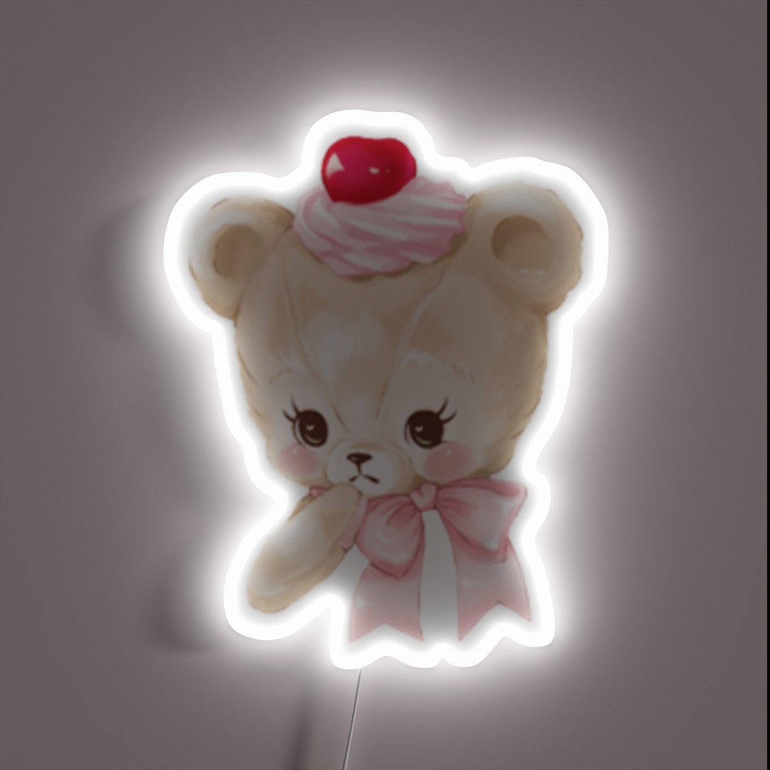 Cream Pink Cherry Coquette Bear RGB Neon Sign