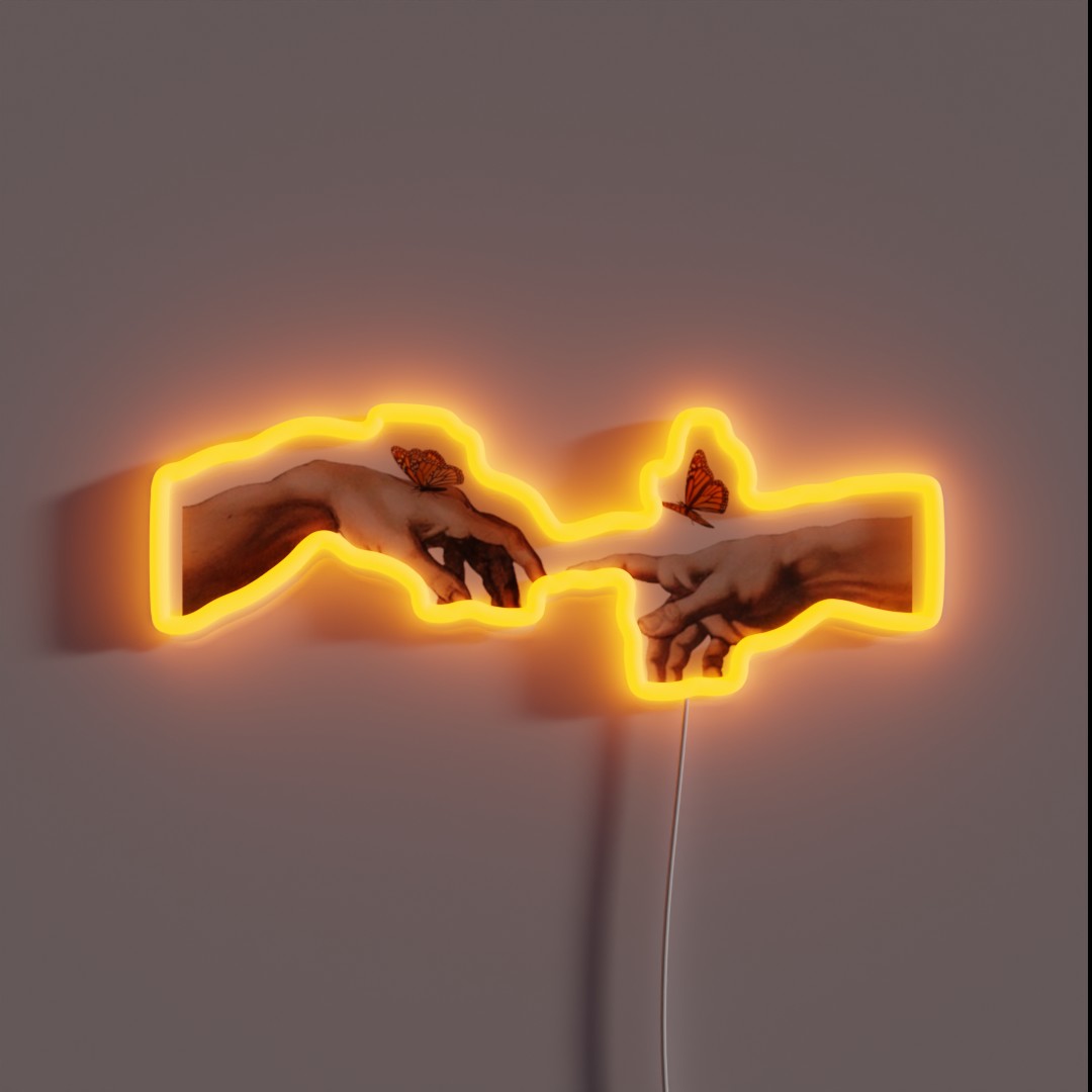 Introducing the “Creation of Adam Monarch Butterfly Aesthetic” RGB Neon Sign – a masterpiece that combines art and technology. Inspired by Michelangelo’s famous fresco, this sign brings the majestic beauty of the monarch butterfly into your home or office.
