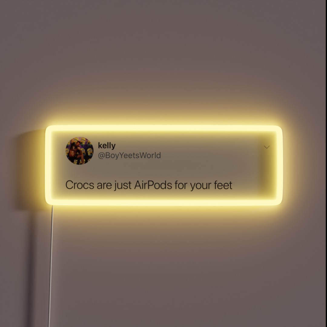 Unlike traditional glass neon signs, our Crocs Tweet RGB Neon Sign is built using durable LED technology. This means it’s less prone to damage and can withstand the wear and tear of daily use. The sign’s design is also non-fragile, eliminating the risk of breakage.