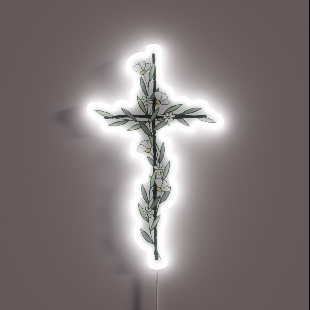 **Illuminate Your Space with the Cross With Little Flowers 3 RGB Neon Sign**
