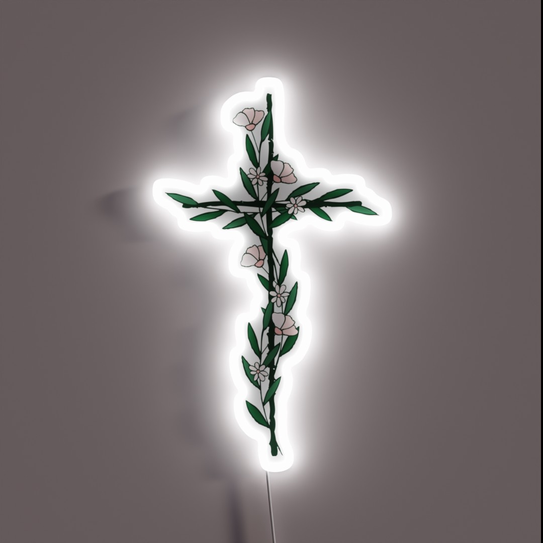 **Cross With Little Flowers 7 RGB Neon Sign**