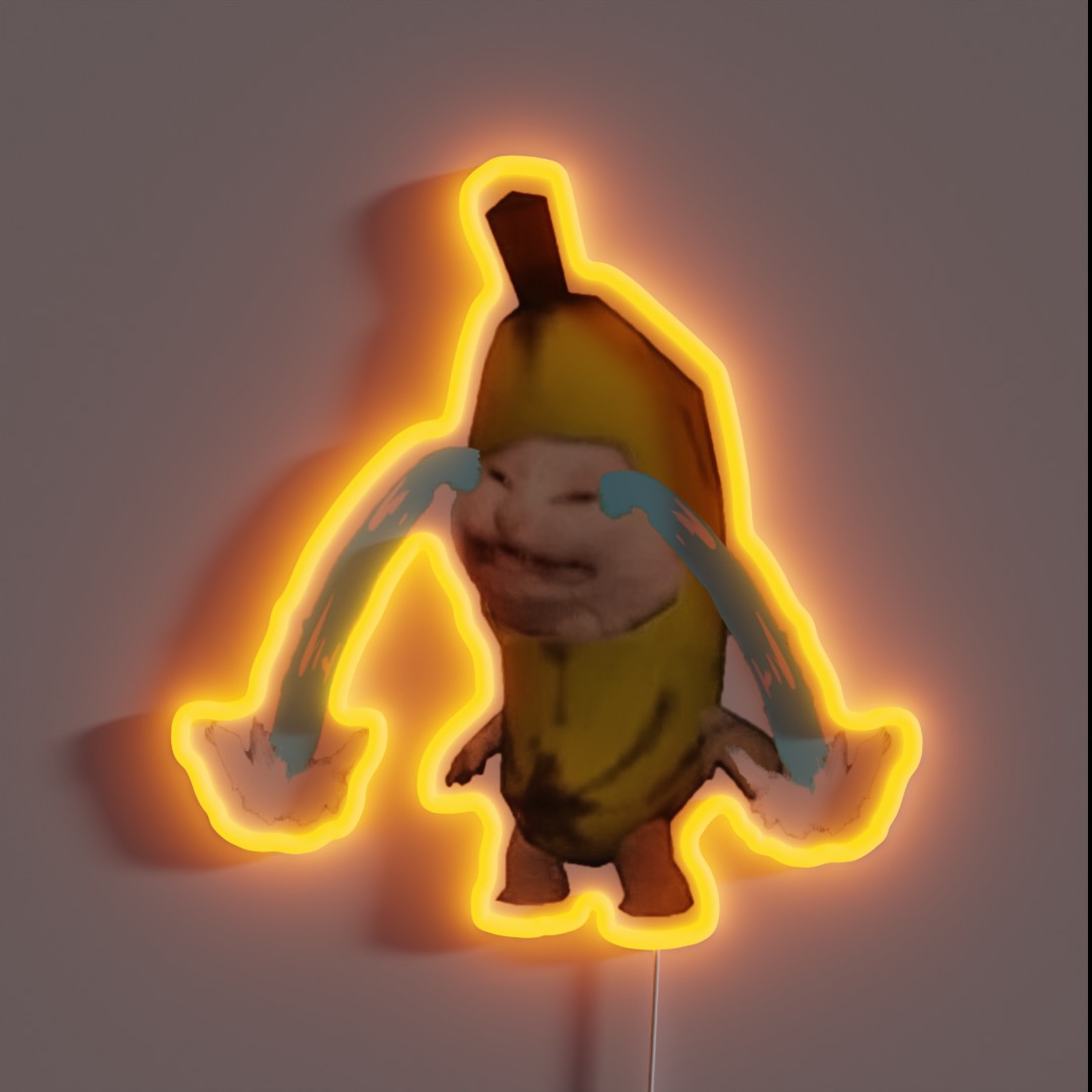 Introducing the Crying Banana Cat RGB Neon Sign: a unique and eye-catching addition to any room. This touchable and safe sign features a low-voltage design (12V adapter included), making it suitable for indoor use.