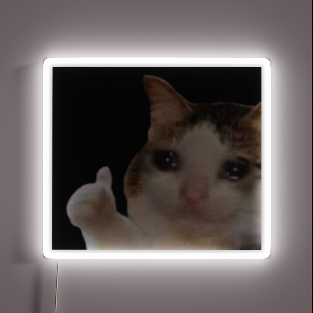 **Crying Cat Thumbs Up Meme RGB Neon Sign**