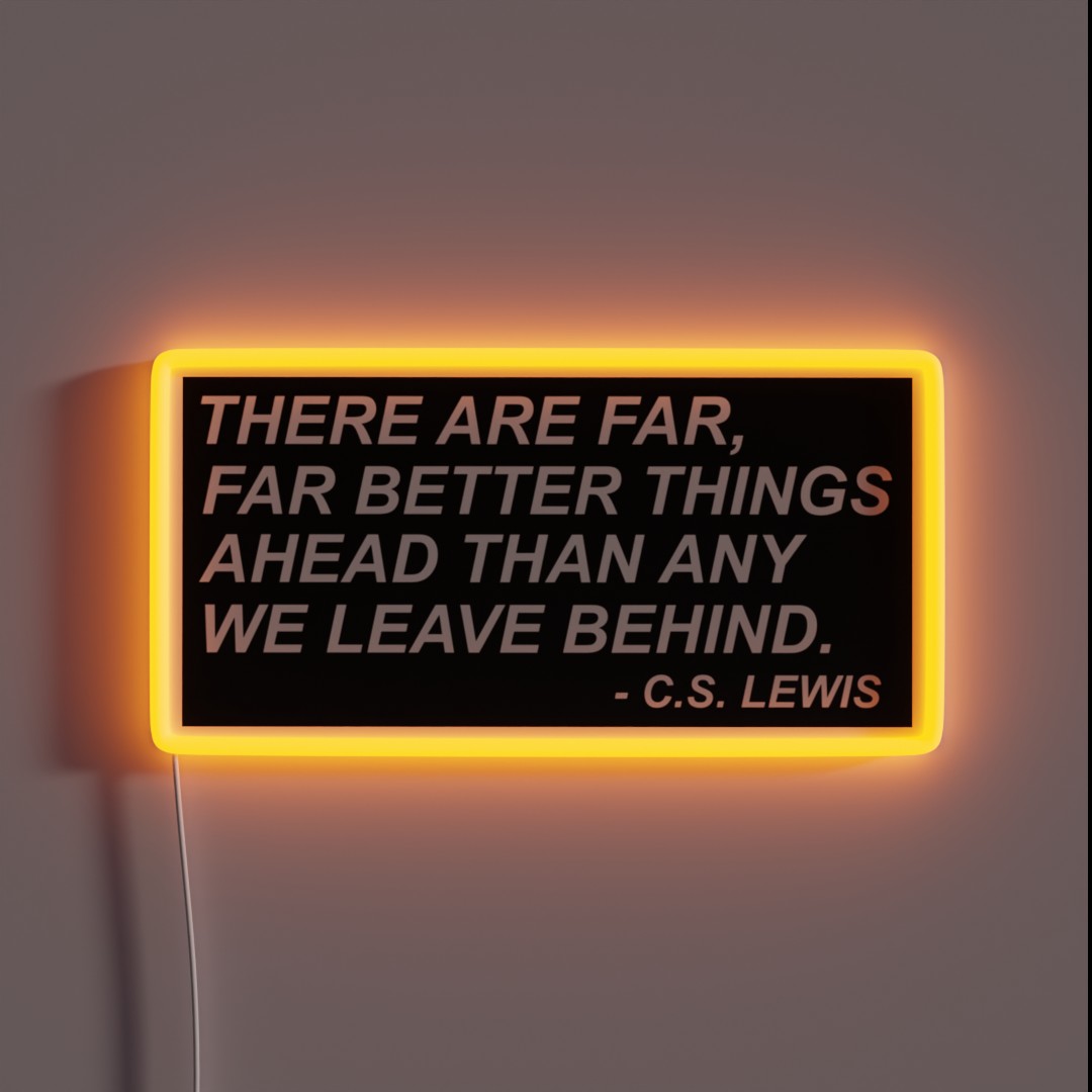Elevate your home or office decor with the inspiring words of renowned author C.S. Lewis, presented in a vibrant and modern way with this exceptional RGB neon sign. “Far Better Things” is a phrase that resonates with fans of the beloved author, and now it can be displayed prominently in your space.