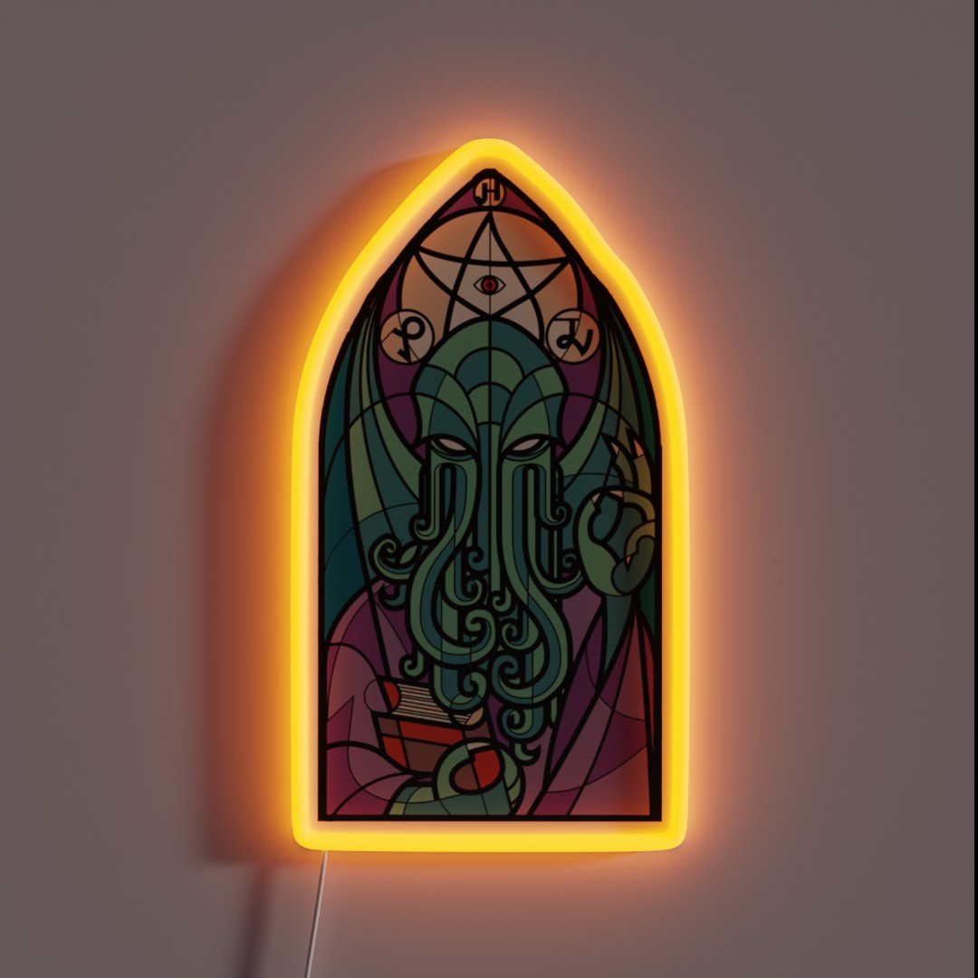 Cthulhu Church Stained Glass Cosmic Horror RGB Neon Sign