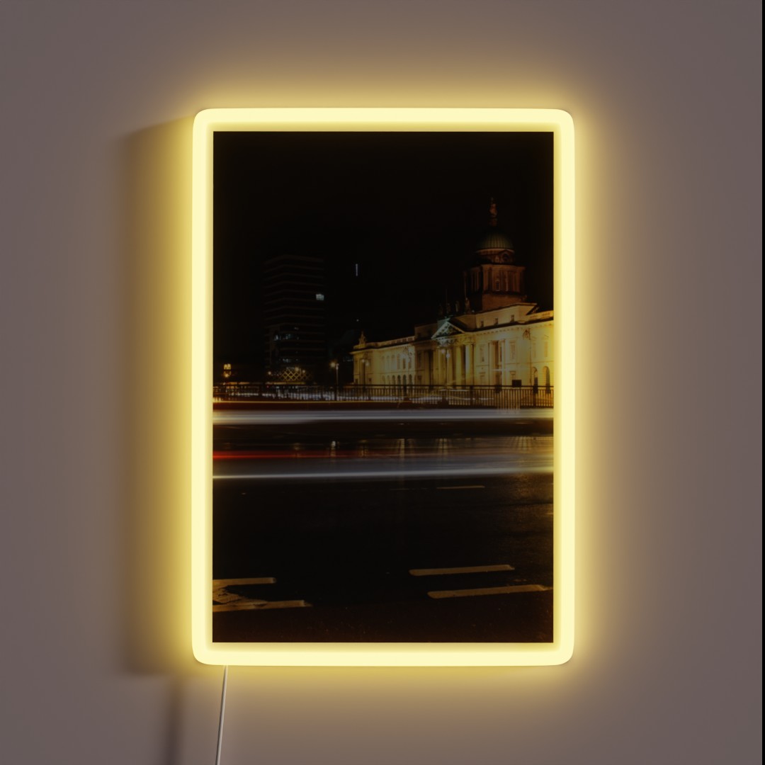 Elegant Customs House light trails RGB neon sign with vibrant LED lighting, perfect for decorative home or office illumination, creating a modern ambiance and unique conversation starter.