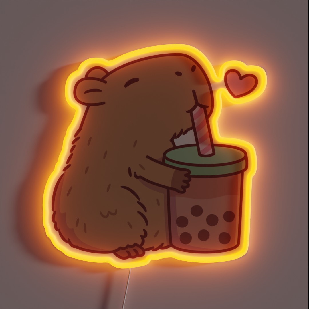 Cute Capybara Loves Bubble Tea RGB Neon Sign