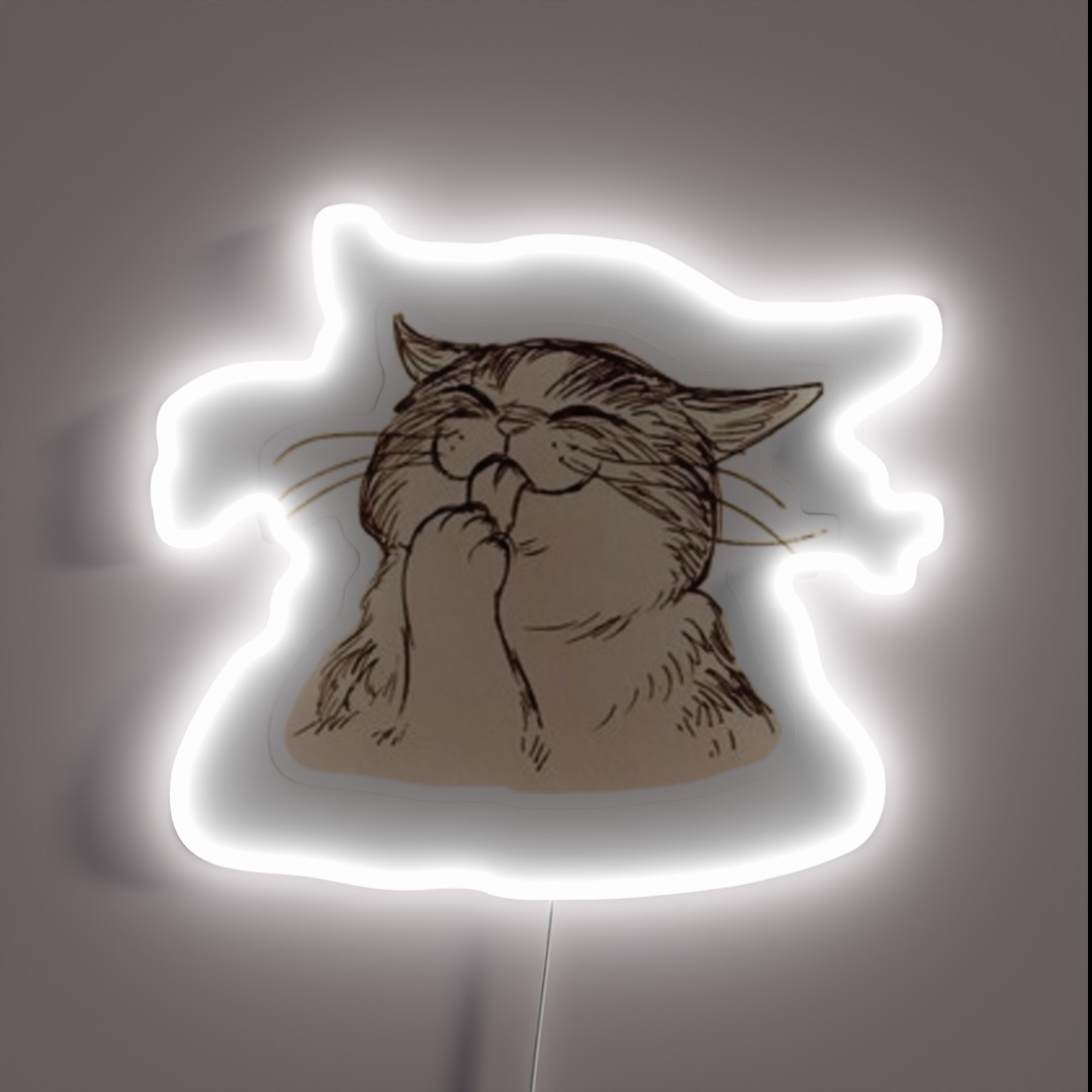 **Cute Cat Licking Its Paw Design RGB Neon Sign**