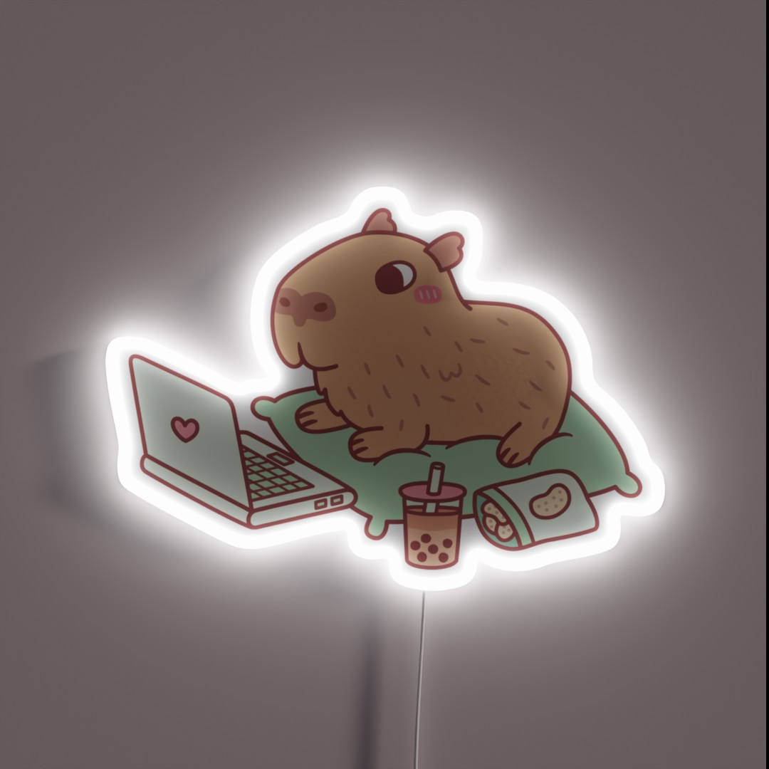 **Cute Chilling Capybara With Laptop And Snacks RGB Neon Sign**