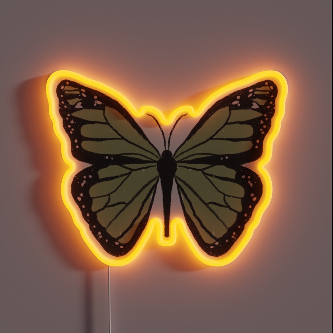 Add a touch of whimsy to your space with this unique, handmade RGB neon sign featuring a delicate sage green indie butterfly design, perfect for bohemian and eclectic decor enthusiasts.