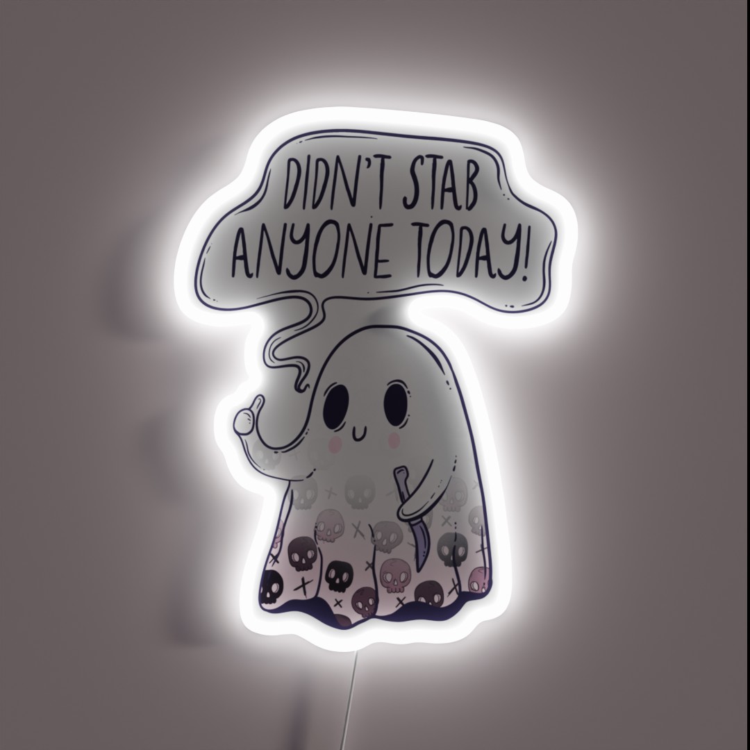 Cute Ghost Didn T Stab Anyone Today RGB Neon Sign