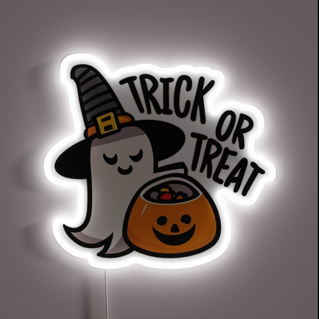 Cute Ghost Holding Pumpkin Candy Bucket Trick RGB Neon Sign