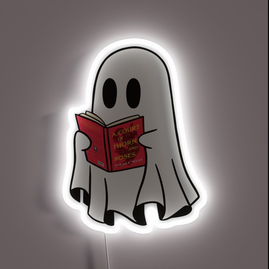 Cute Ghost Reading Acotar Book Spooky Book RGB Neon Sign