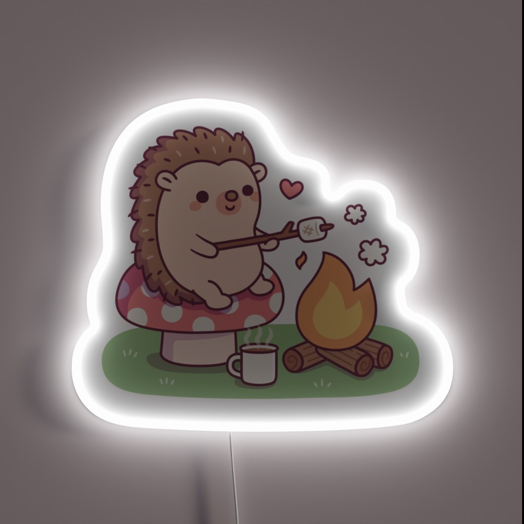 **Cute Hedgehog Toasting Marshmallow At Campfire RGB Neon Sign**