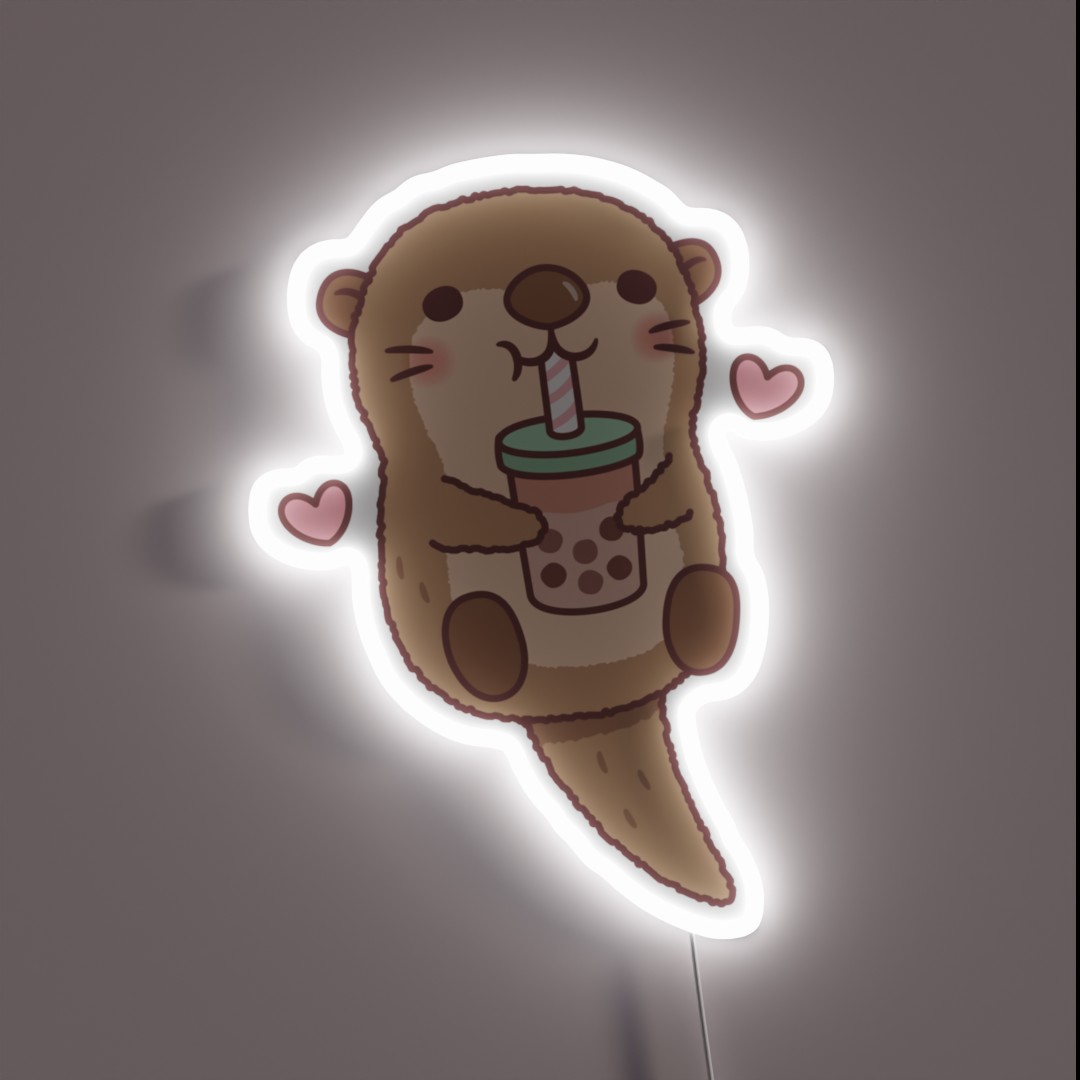 **Cute Little Otter Loves Bubble Tea RGB Neon Sign**