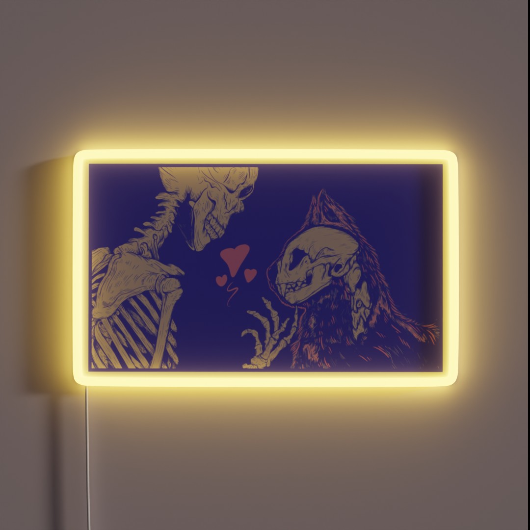 Add a whimsical touch to your room with this adorable pink and purple skeleton cat companion RGB neon sign, featuring a playful kitty and a sweet skeletal friend.