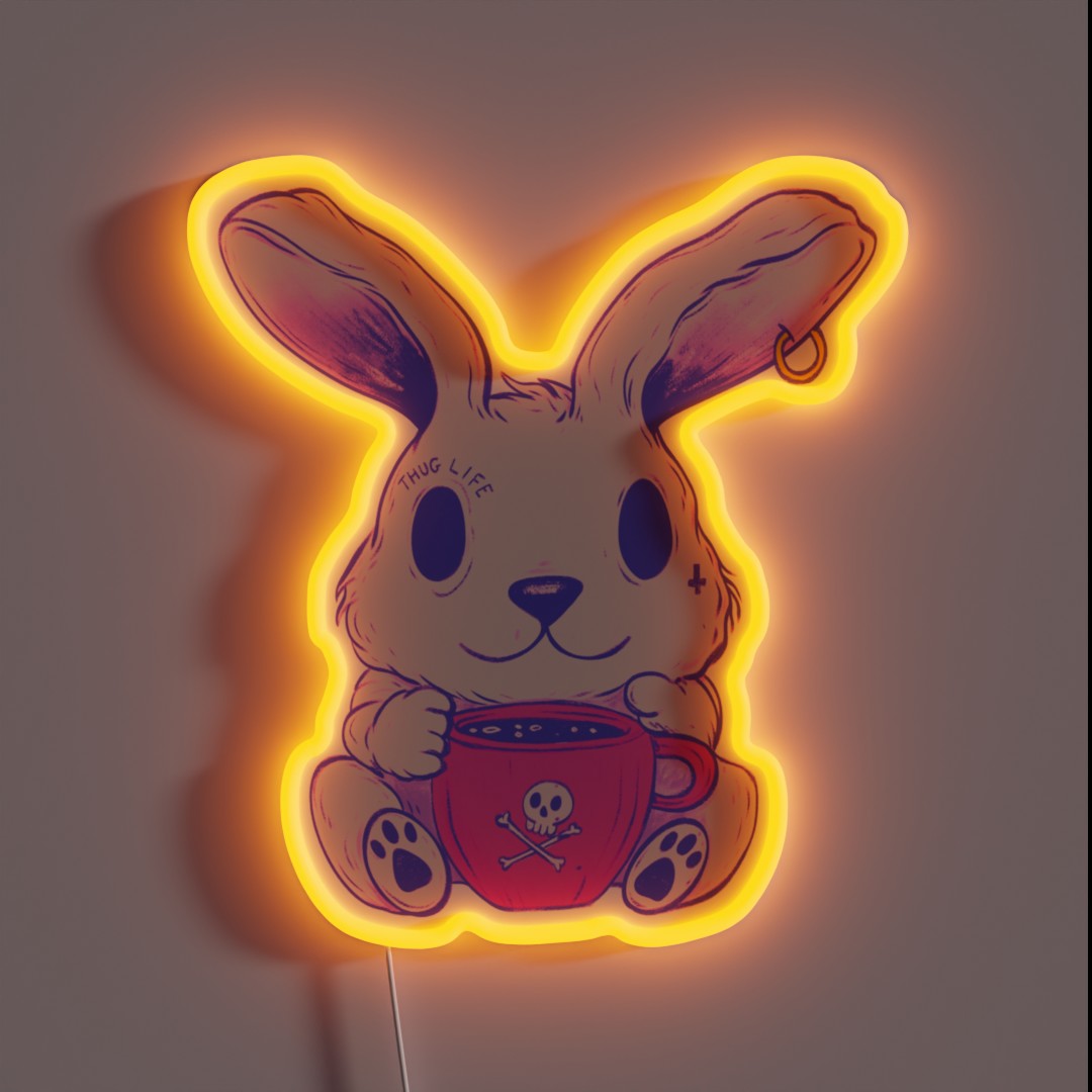Cute Rabbit Drinking Tea Whimsical Bunny Brew RGB Neon Sign