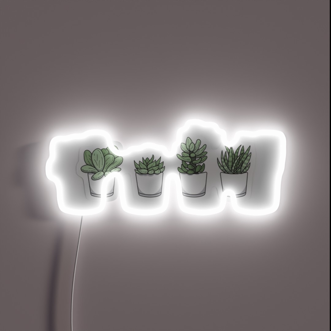 Add a touch of modern chic to your home decor with this unique set of 4 small potted plants paired with a vibrant RGB neon sign.