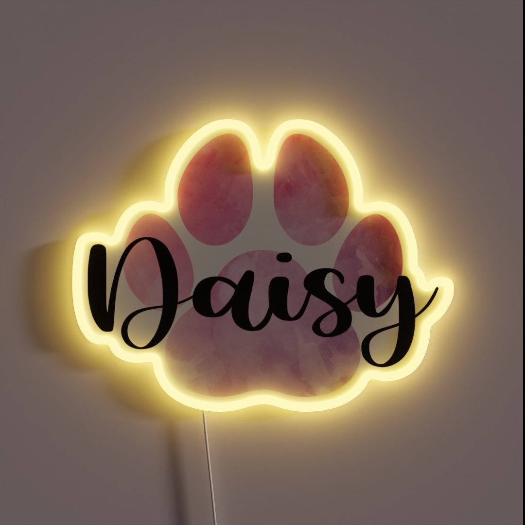 Daisy Pink Pet Name Paw Print RGB Neon Sign