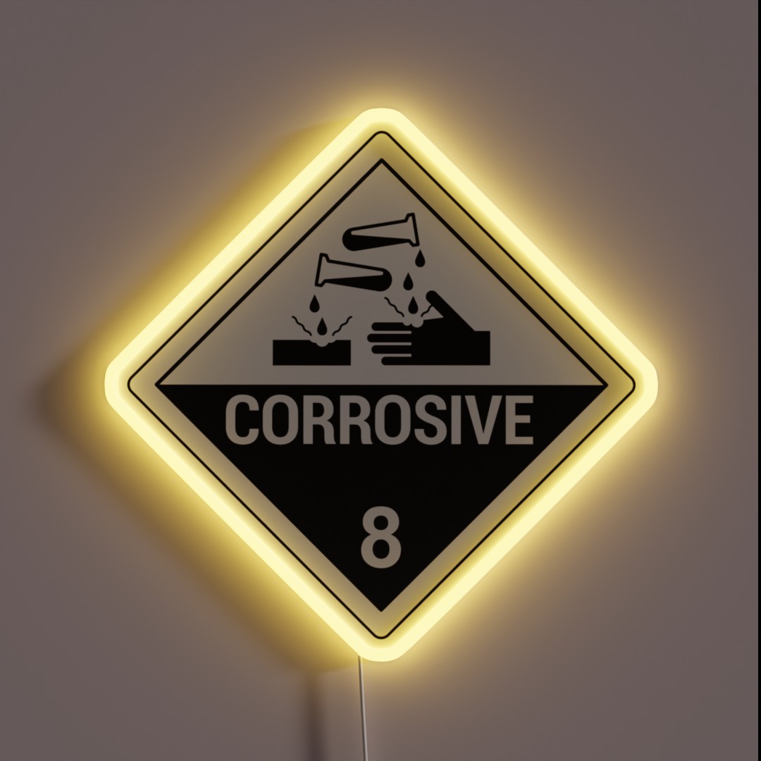 Caution laboratory workers with this eye-catching RGB neon lab safety sign warning of corrosive chemicals and promoting a safe working environment.