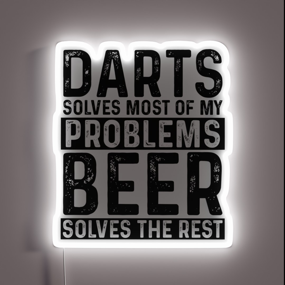 Darts Solves Most Of My Problems Beer Solves RGB Neon Sign